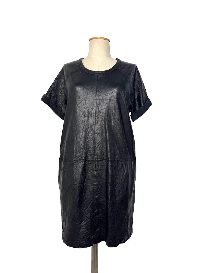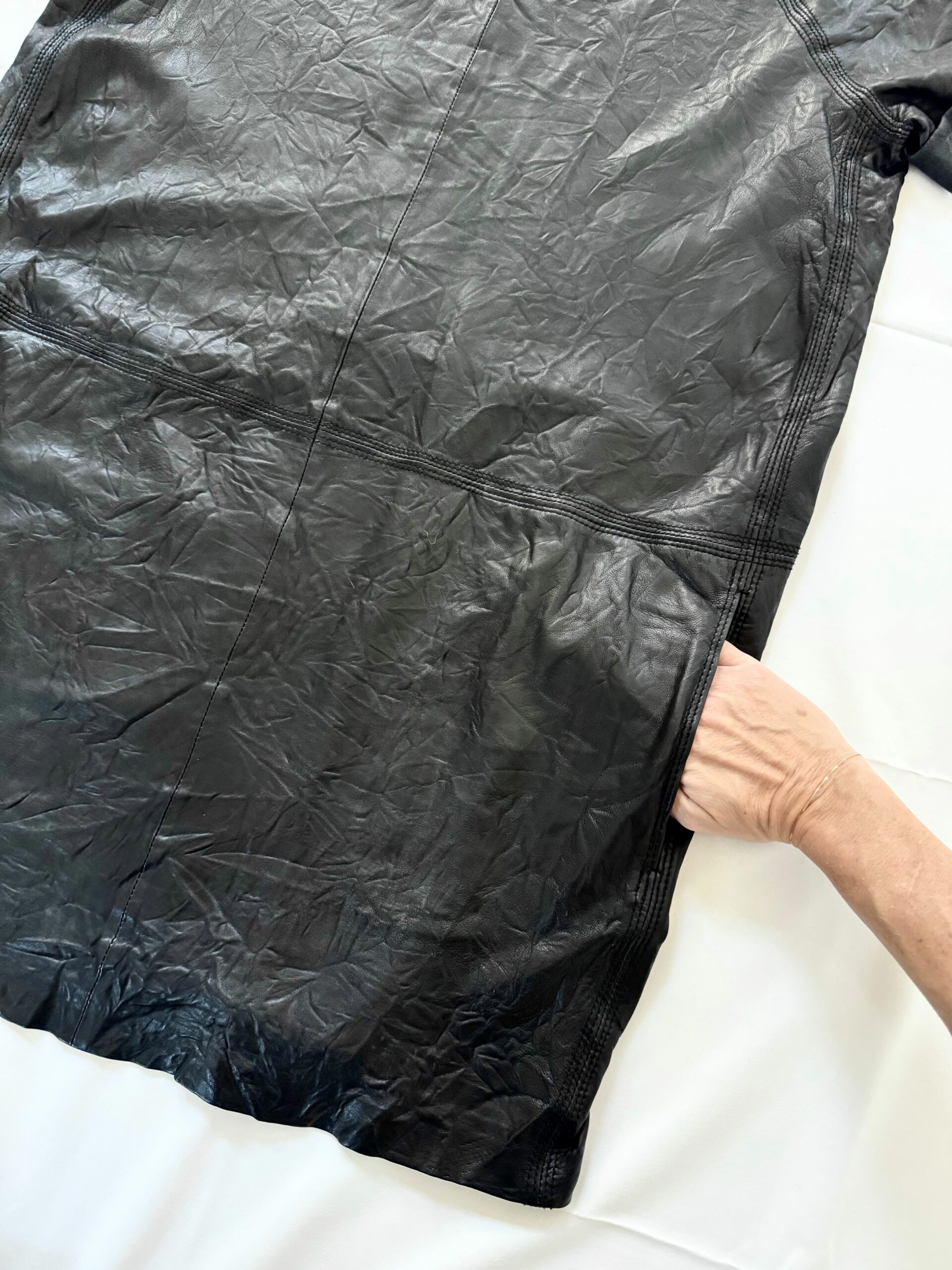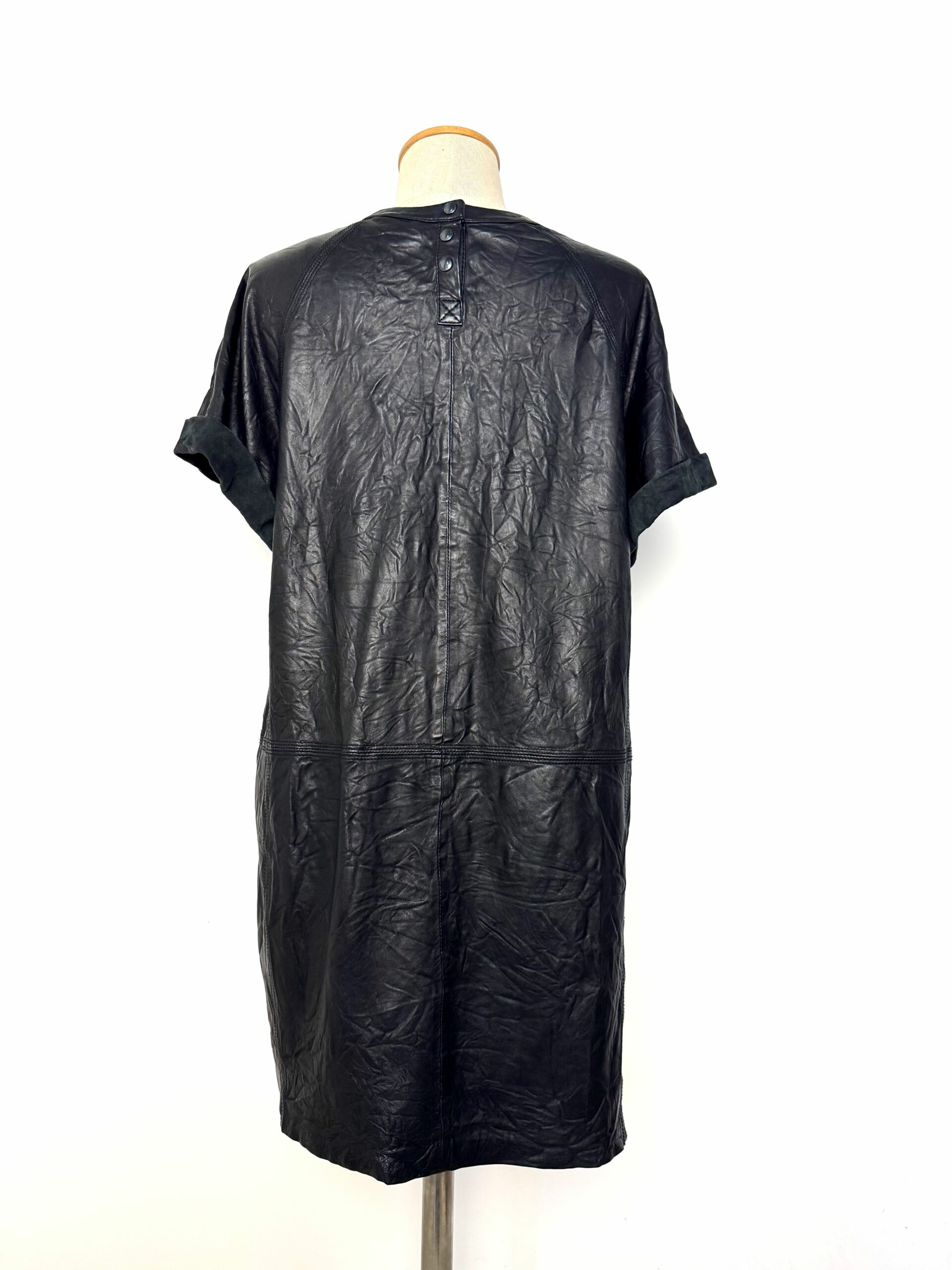 Wrinkled leather dress, 100% leather, black color. Straight-fit dress with pockets. Size M.