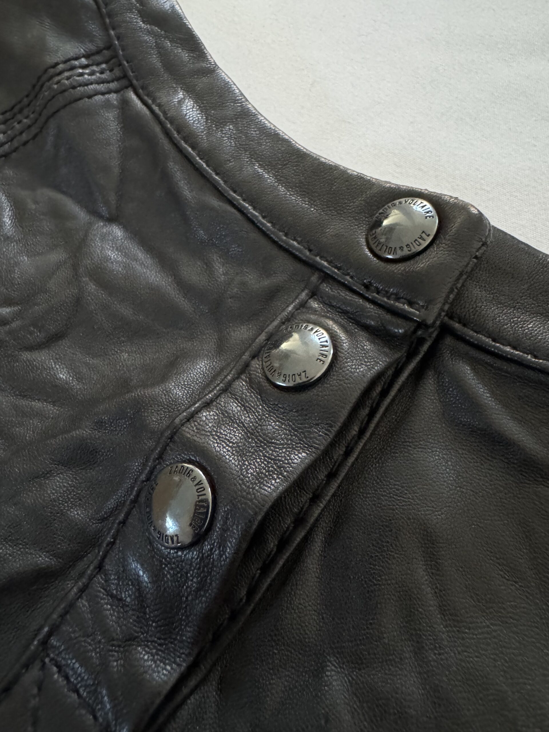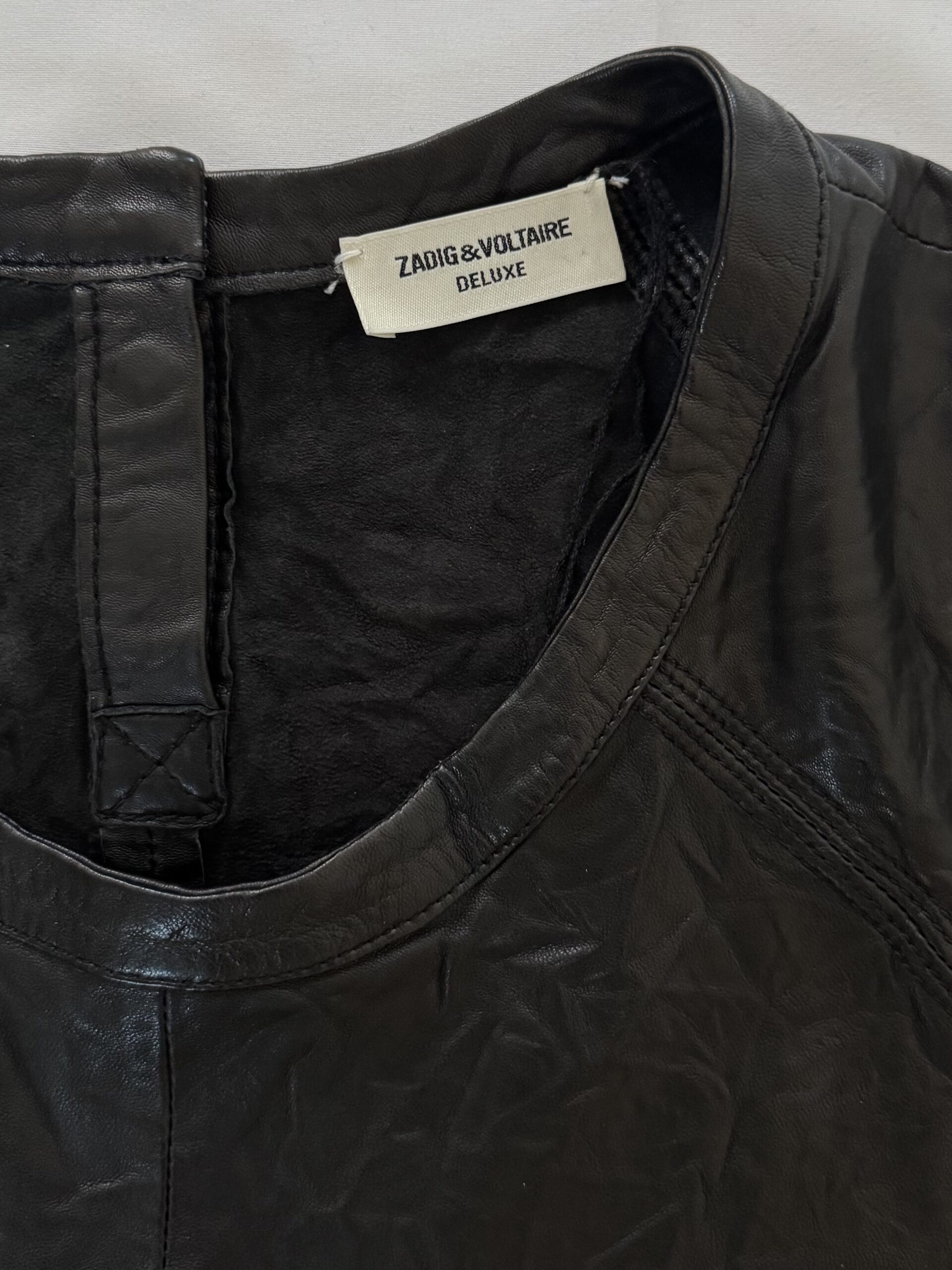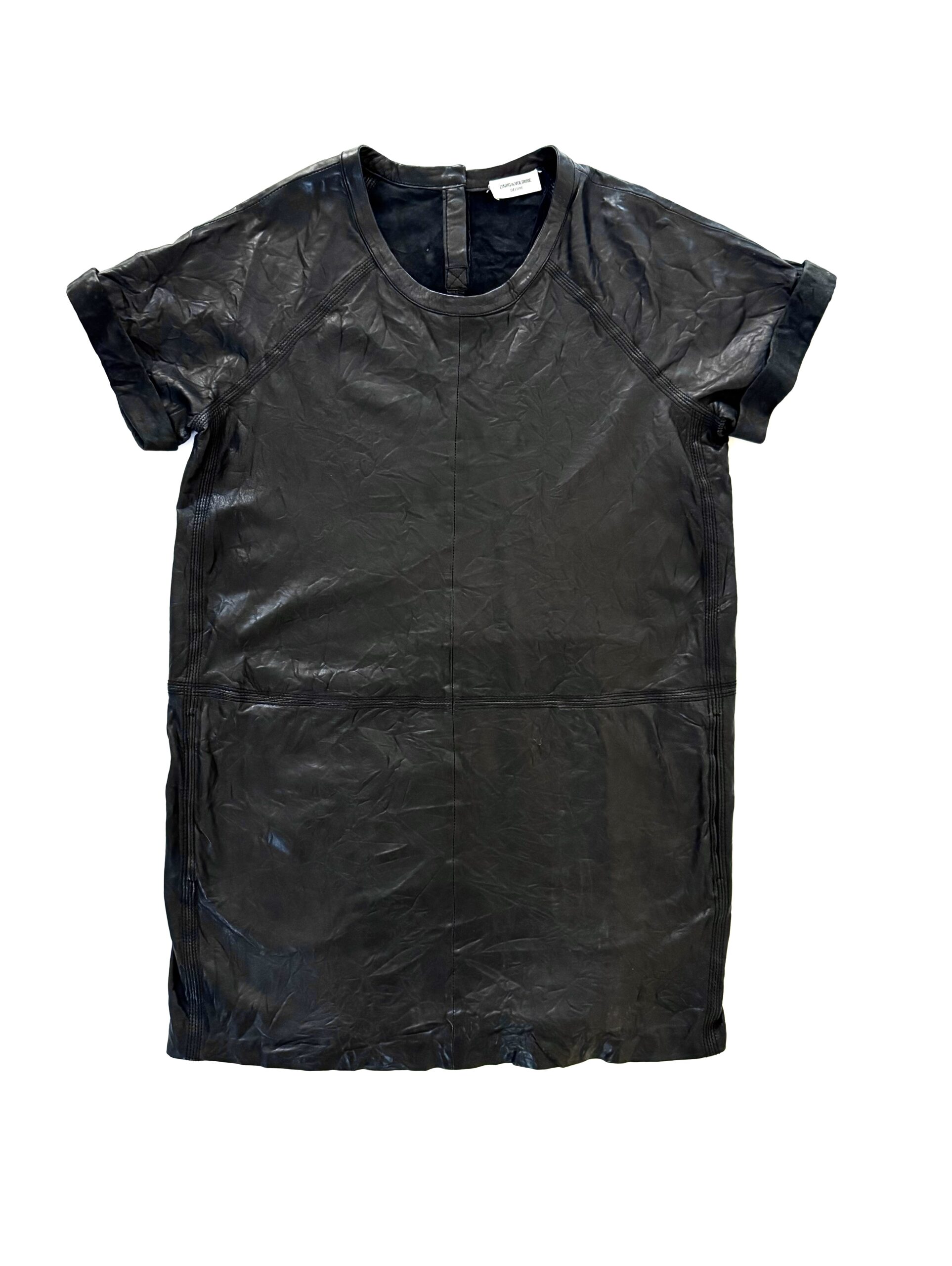 Wrinkled leather dress, 100% leather, black color. Straight-fit dress with pockets. Size M.